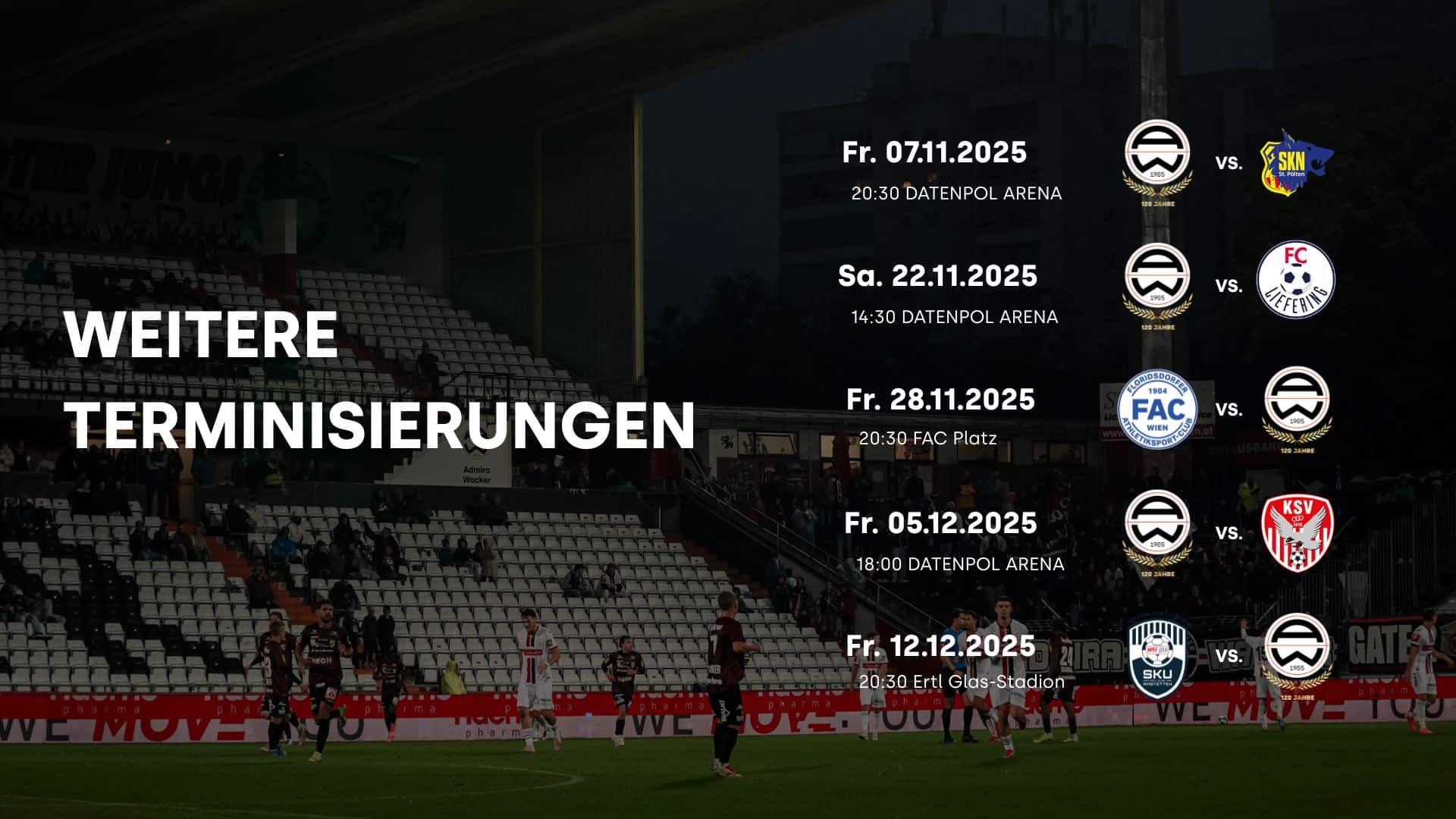 Die nächsten Spieltermine in der Admiral 2. Liga stehen fest. In den kommenden Wochen warten auf unser Team sowohl spannende Heimspiele in der DATENPOL ARENA als auch herausfordernde Auswärtspartien. Die Mannschaft freut sich dabei auf die Unterstützung unserer Fans in der Südstadt und auswärts.